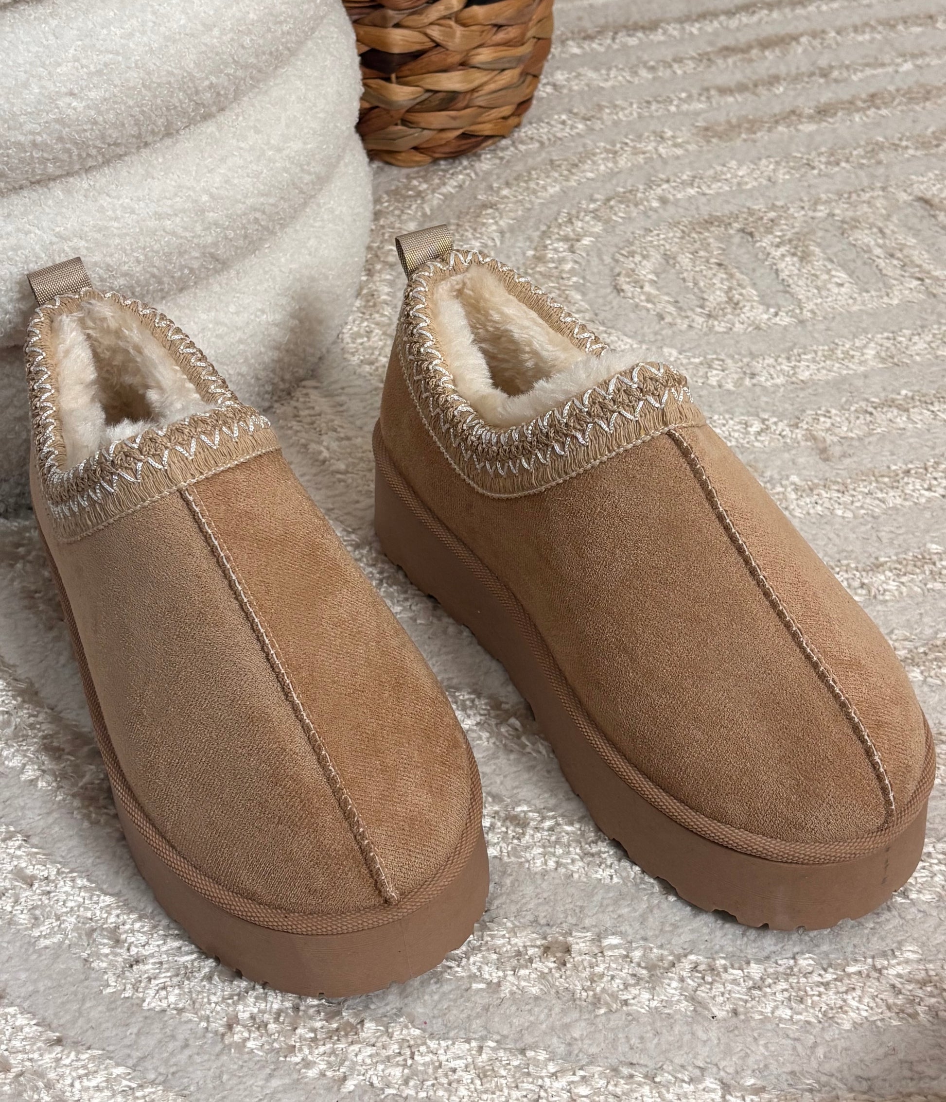 Ces bottines basses beiges en suédine offrent un confort optimal grâce à leur intérieur entièrement fourré, doux et chaud. Parfaites pour garder vos pieds au chaud tout en restant élégante, elles sont idéales pour affronter les journées fraîches avec style et bien-être.