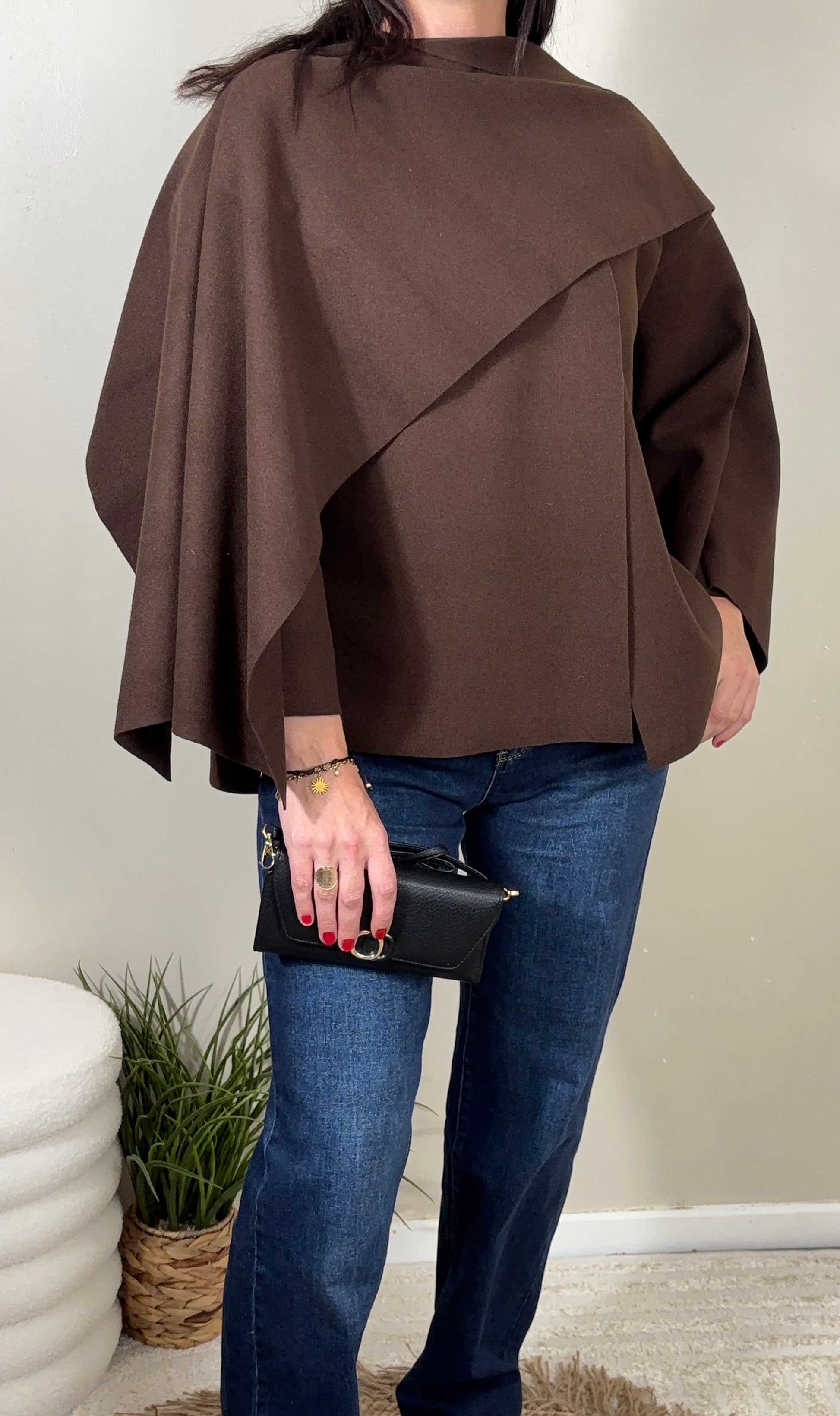 Cette cape élégante, dotée d'une écharpe intégrée, vous apporte chaleur et confort tout au long de la journée. Polyvalente, elle s’adapte parfaitement à toutes vos tenues, que ce soit avec un jean, un pantalon ou une jupe. Un choix idéal pour rester chic et bien au chaud en toute occasion.