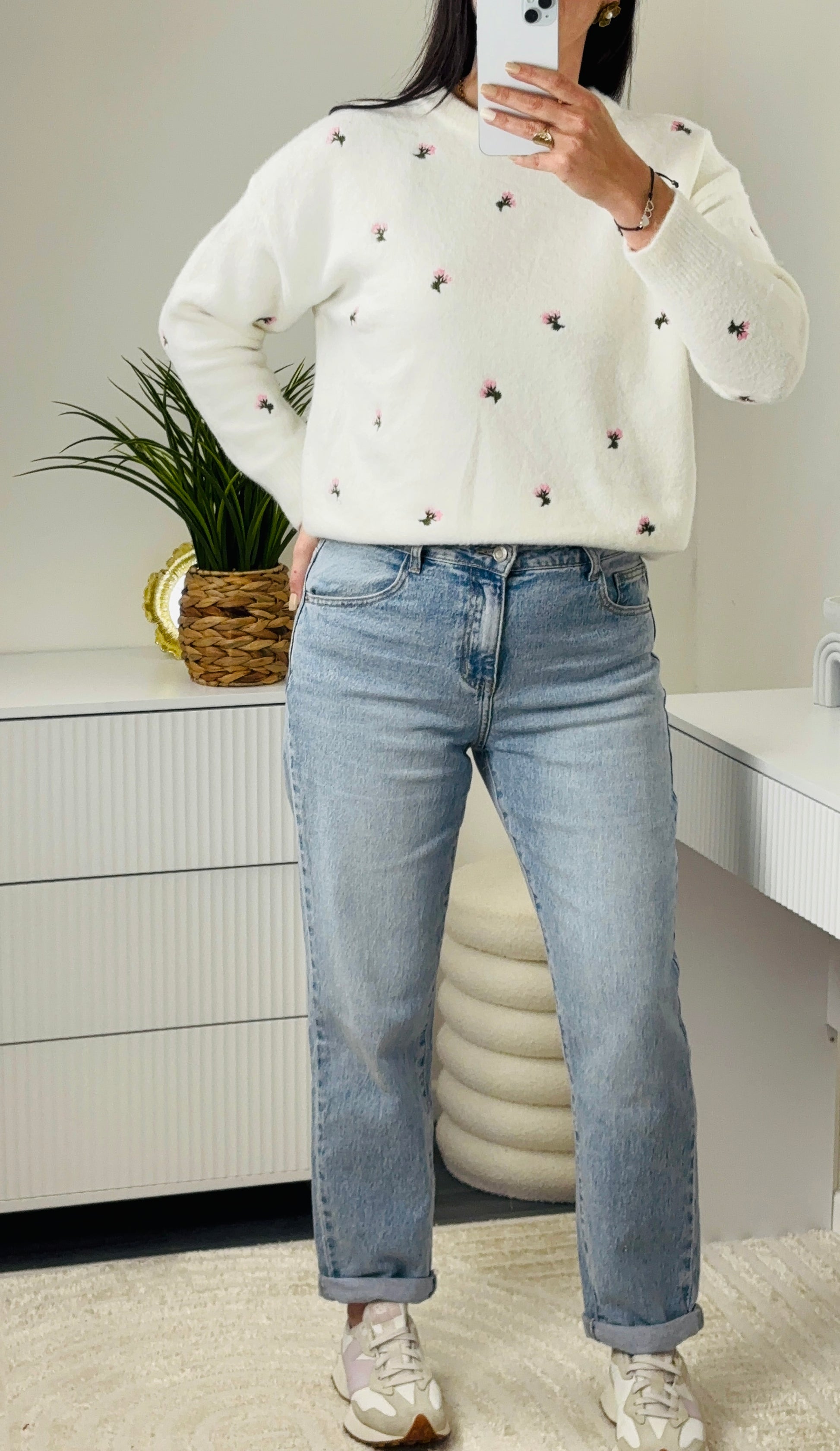 Pull avec fleurs brodeées